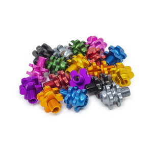 A pair of large aluminum barrel adjusters with lock nuts for all Love Levers or Canti Levers.
