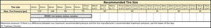• Tire size and pressure recommendation: See chart in Product images