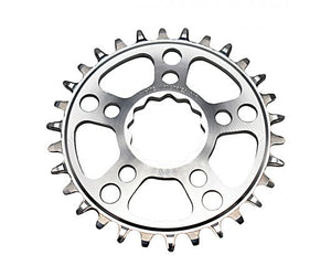 TSR (Tall-Short-Ring) 1X chainrings are designed to work with all modern 10/11/12 speed 1X drivetrain systems. The tall/short tooth profile helps prevent the chain from falling off the ring when riding through rough terrain and is a must on 1x drivetrains, but is also compatible with singlespeed drivetrains. Made in our shop from 7075-T6 aluminum (48-52 tooth rings are 6061-T6).