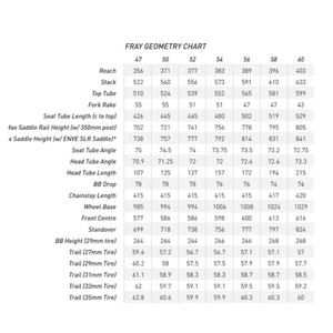 Capable of accommodating tires between 36mm and 40mm for when mixed-surface missions call. The Fray's geometry is optimized for tires between 31mm and 35mm.
